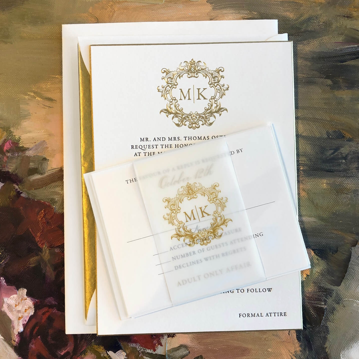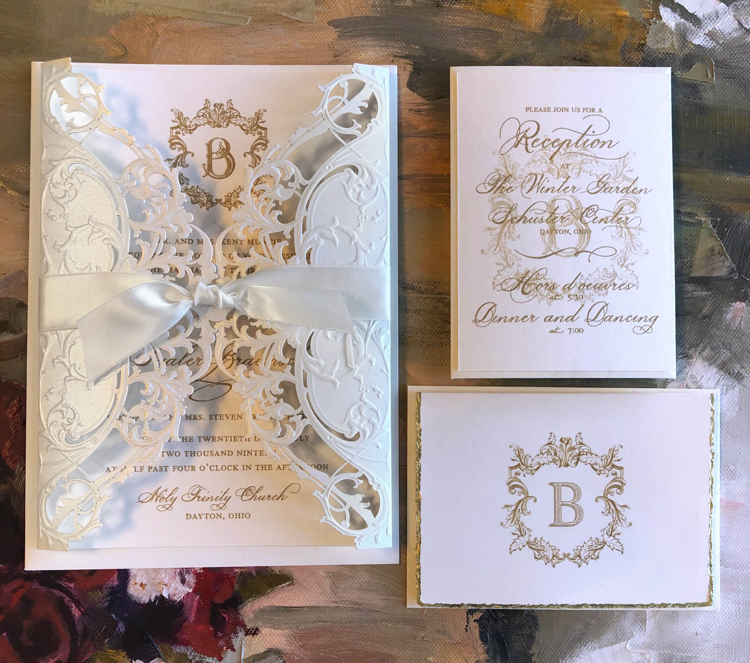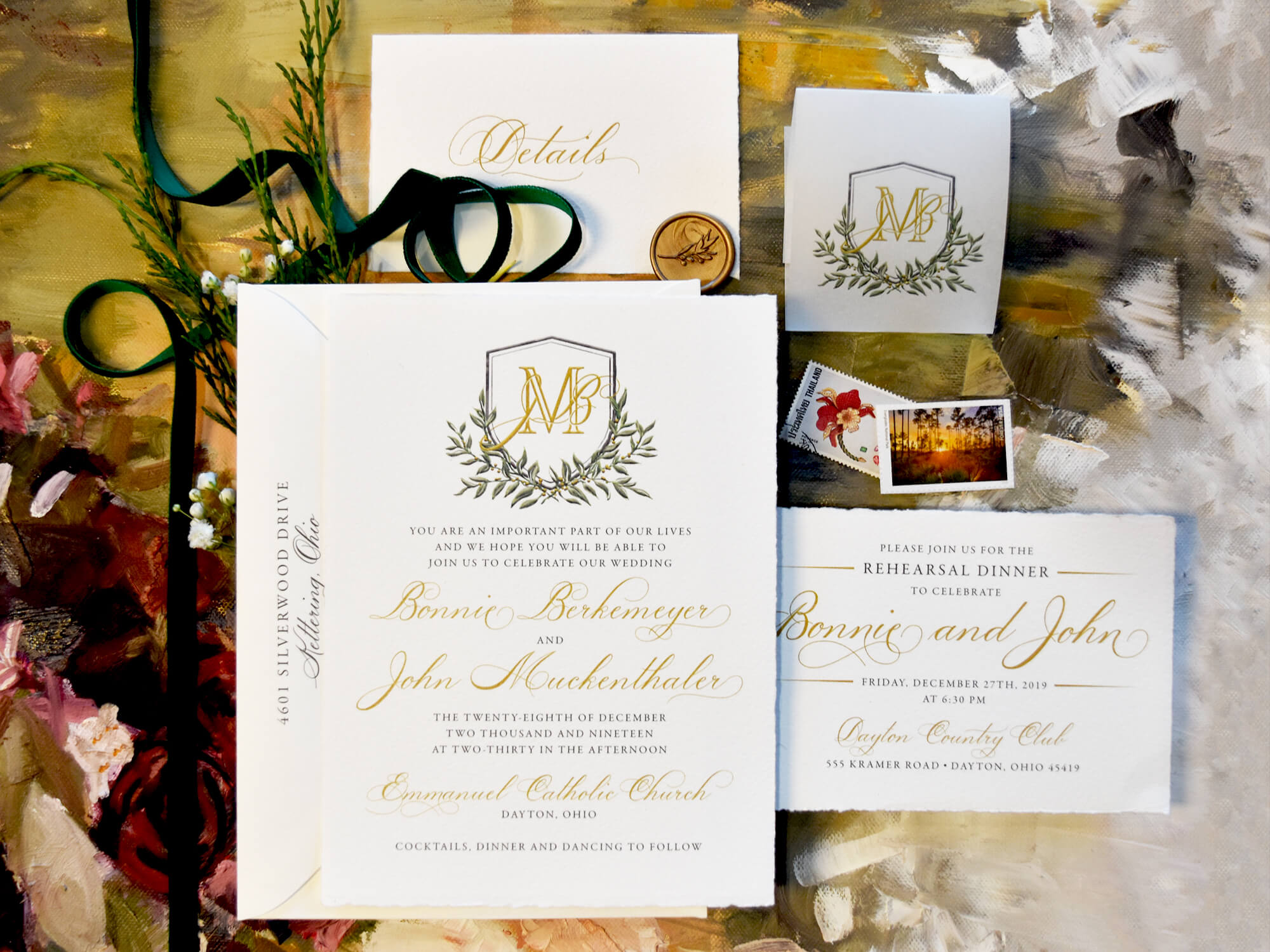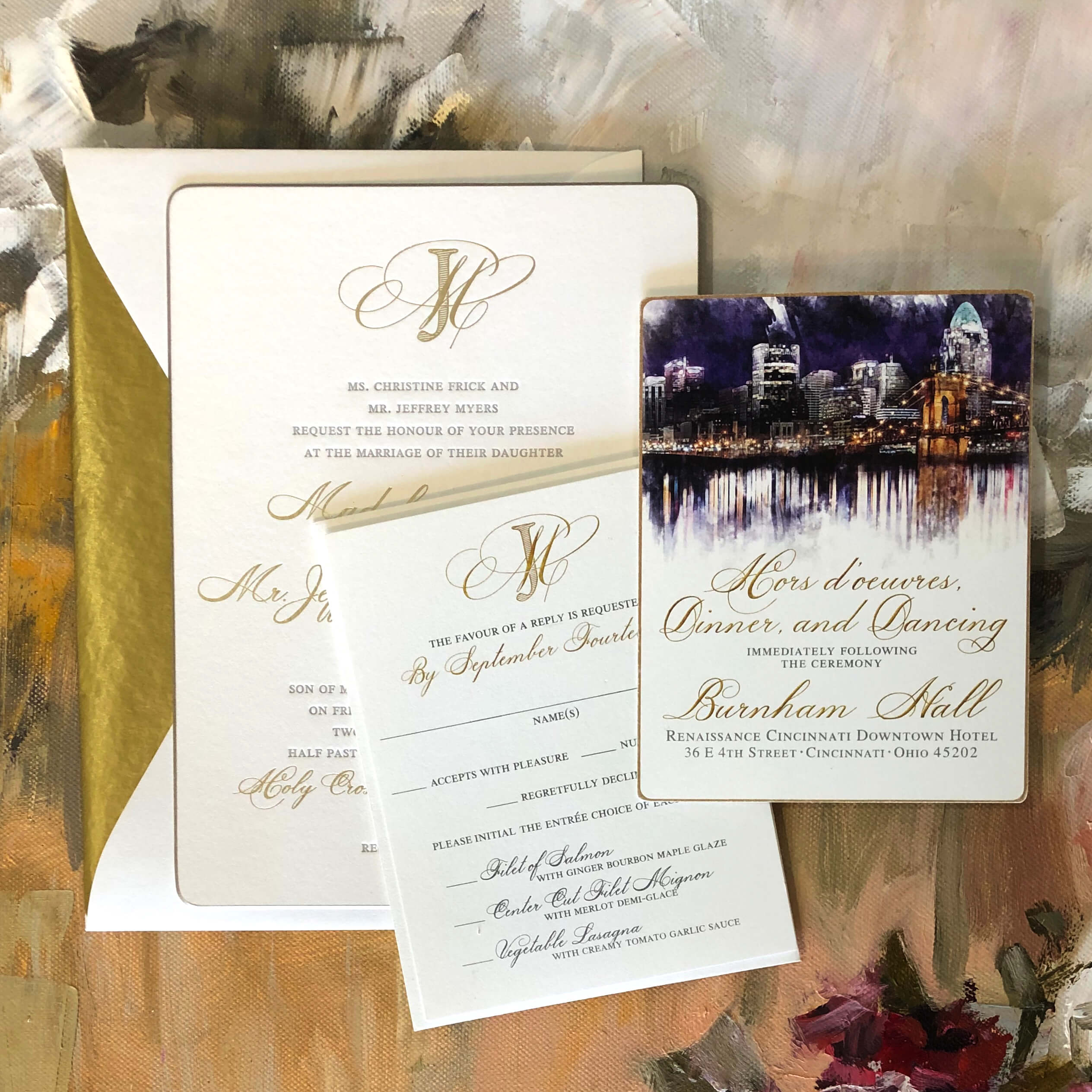 In this section we present a small sampling of our latest work. Our mission as Printers and Stationers at Maria Gossard Designs is finding unique ways to Celebrate you as you prepare to announce your wonderful news. In our very own print shop we utilize modern technology with Old World craftsmanship where we design and craft paper into something beautiful with enduring results. We offer letterpress, off-set and digital printing, foil stamping, engraving, thermography, die cuts, custom monograms, watercolors, hand finished borders and so much more. Whether your style is Classic, Timeless Elegance, Modern and Sophisticated, Bohemian Chic, Playful or Whimsical with Watercolor Details, Rustic, Vintage, Minimalist or a Glamorous Black-Tie Affair we are able to create something perfect just for you. You never get a second chance when announcing your wedding plans. Allow us to help you do so beautifully.