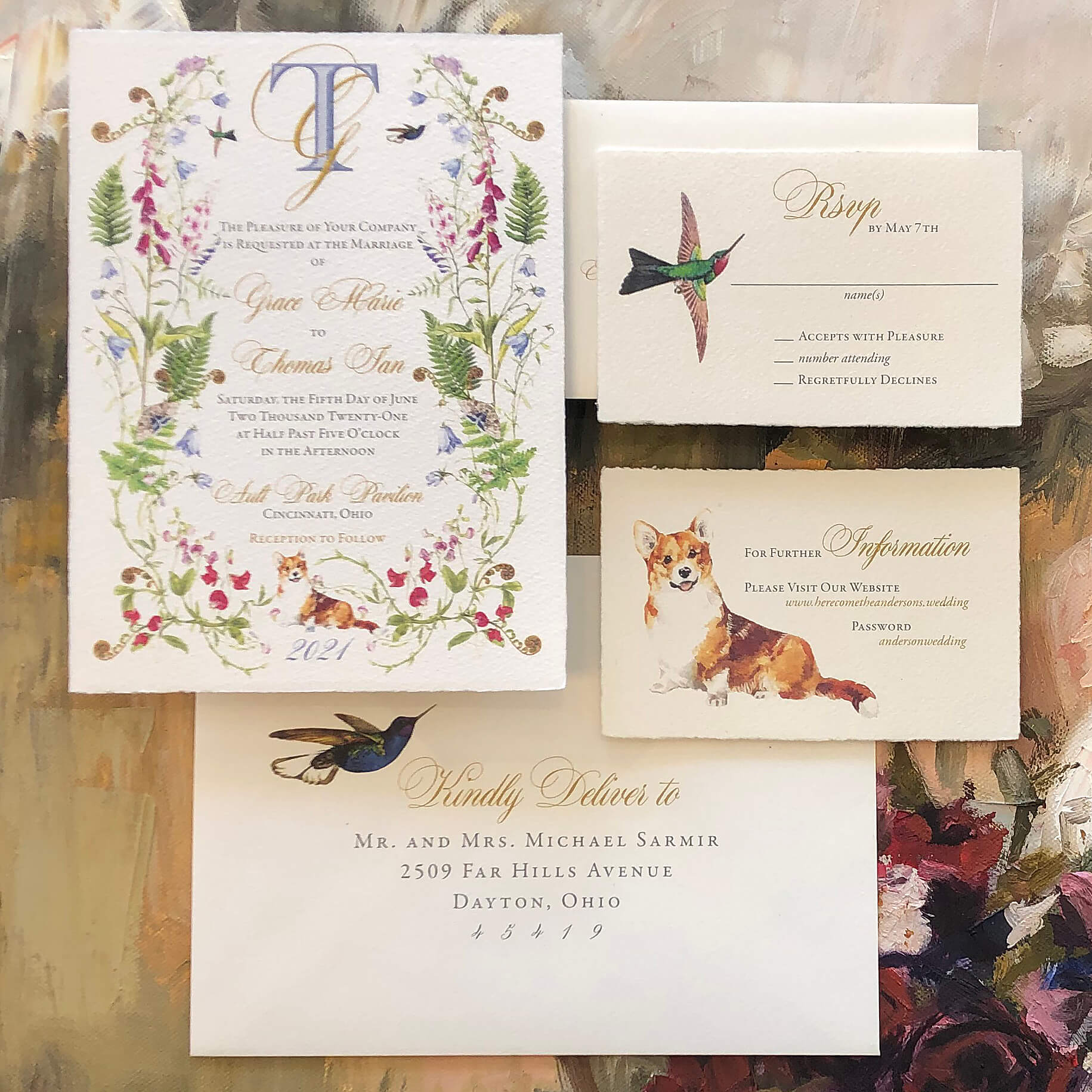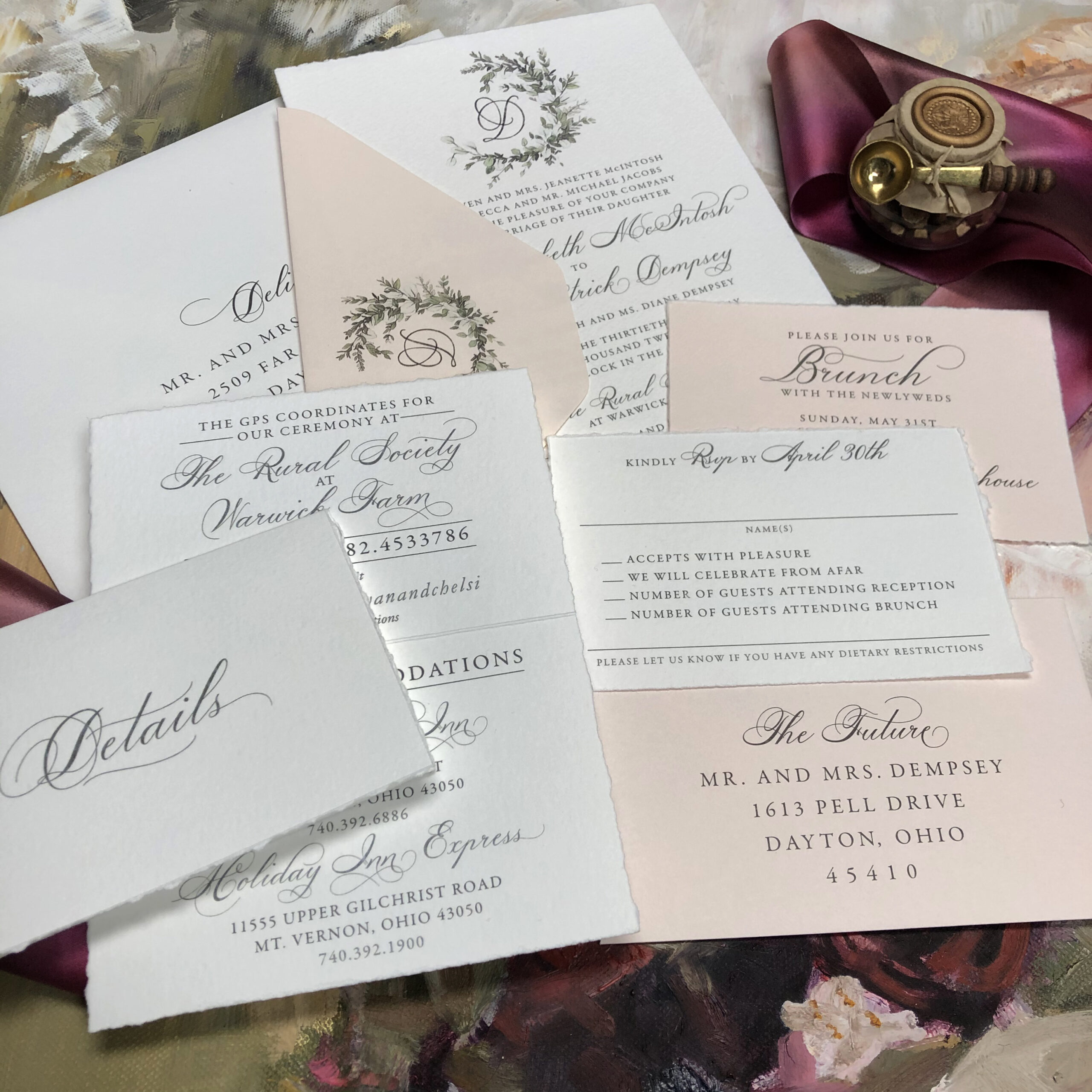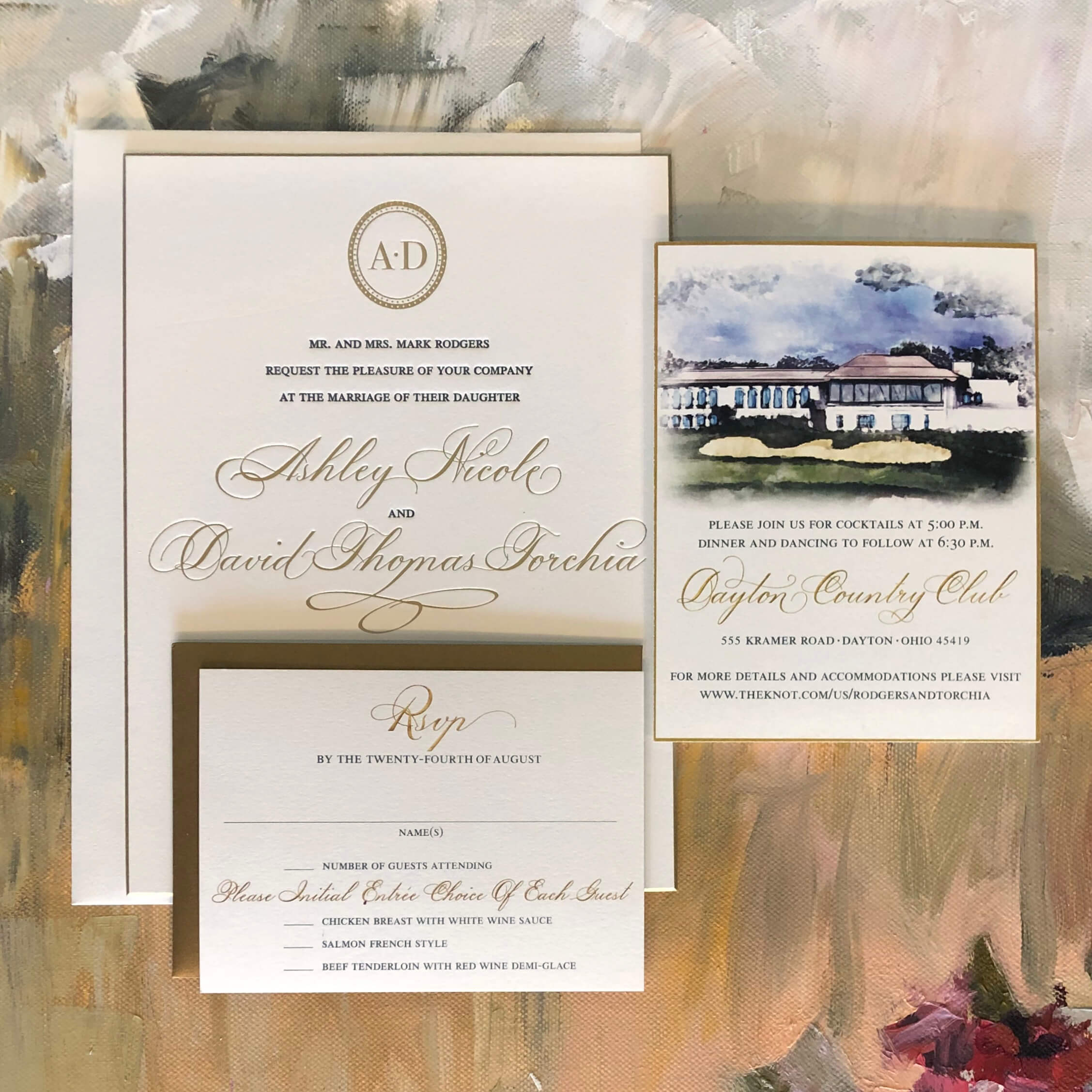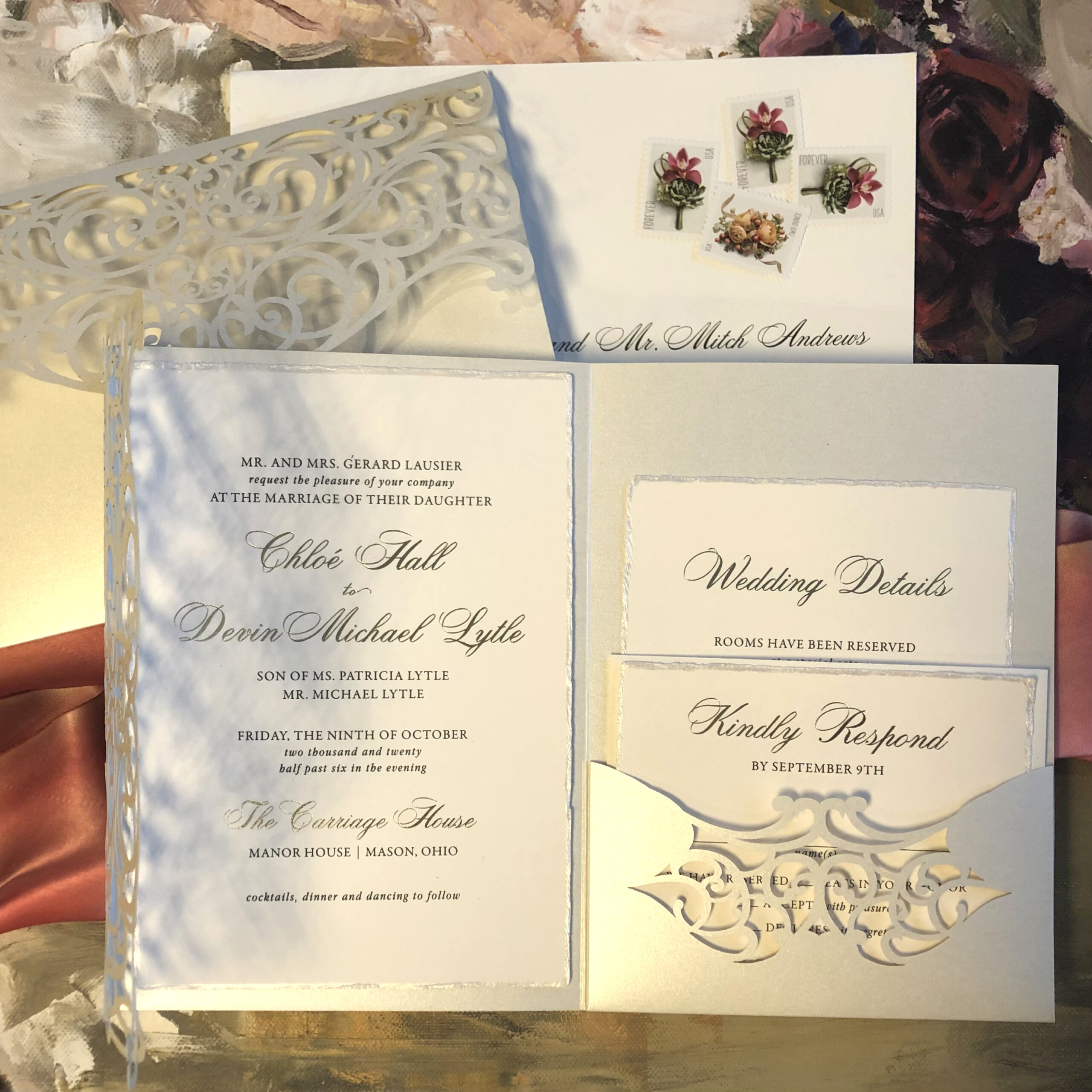 In this section we present a small sampling of our latest work. Our mission as Printers and Stationers at Maria Gossard Designs is finding unique ways to Celebrate you as you prepare to announce your wonderful news. In our very own print shop we utilize modern technology with Old World craftsmanship where we design and craft paper into something beautiful with enduring results. We offer letterpress, off-set and digital printing, foil stamping, engraving, thermography, die cuts, custom monograms, watercolors, hand finished borders and so much more. Whether your style is Classic, Timeless Elegance, Modern and Sophisticated, Bohemian Chic, Playful or Whimsical with Watercolor Details, Rustic, Vintage, Minimalist or a Glamorous Black-Tie Affair we are able to create something perfect just for you. You never get a second chance when announcing your wedding plans. Allow us to help you do so beautifully.