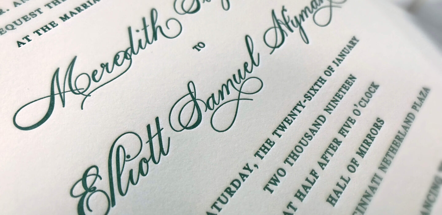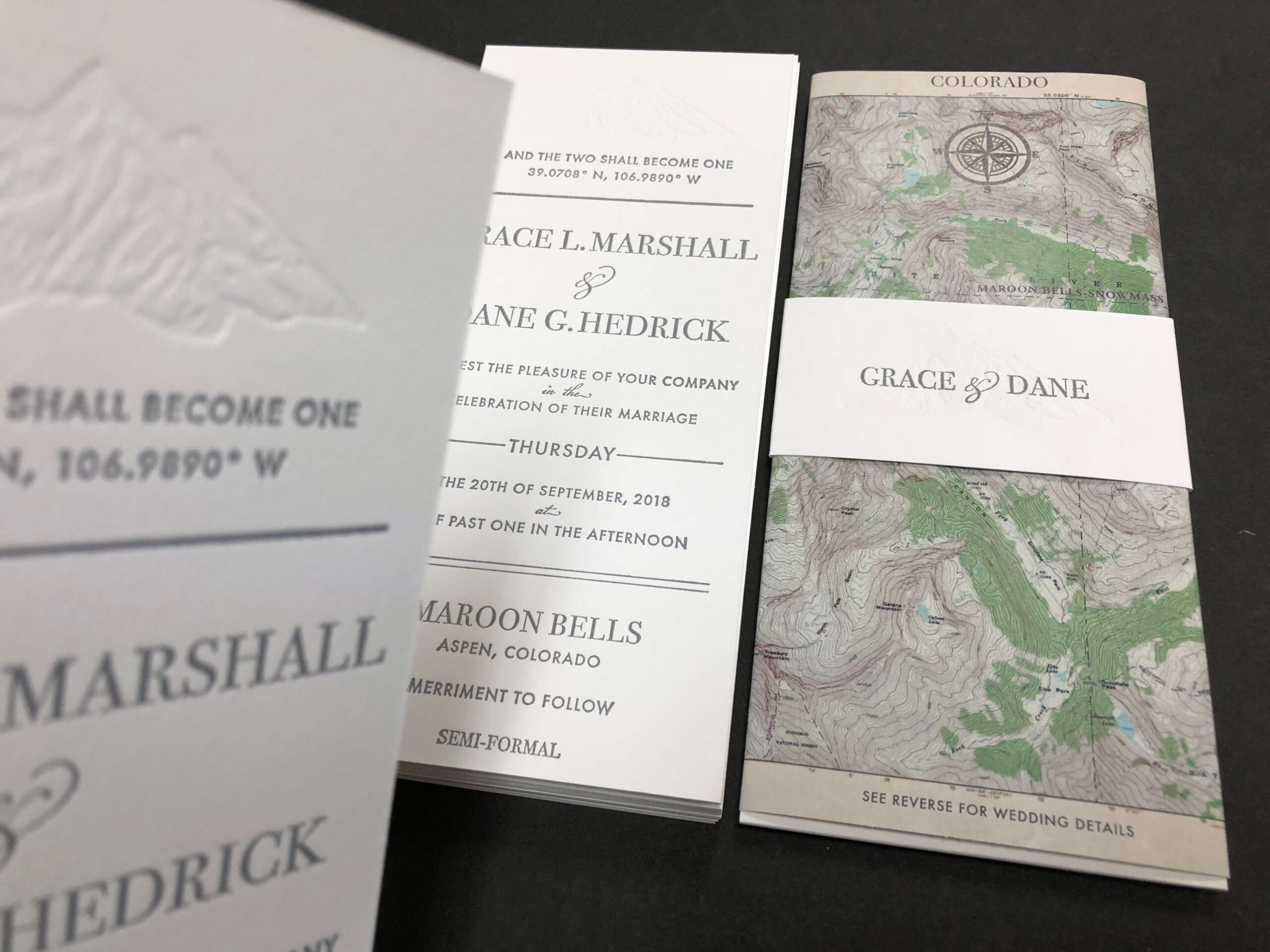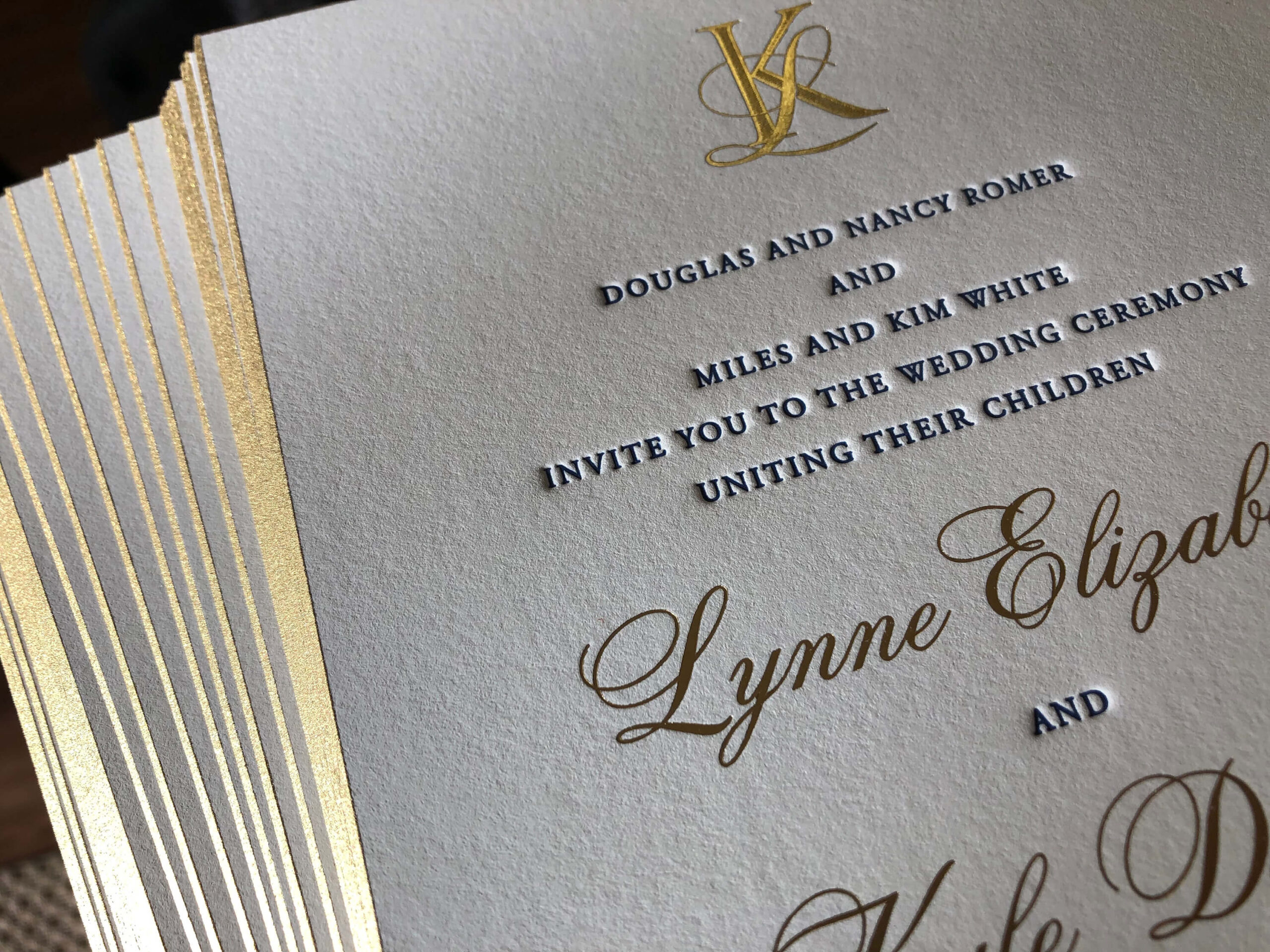 This 500-year-old craft continues its renaissance in this digital age because of its extraordinary beauty and lasting impression on paper. Letterpress is unique and crisp giving greater visual definition to the type and every design detail. Our primary goal at Think Printing and Graphics and Maria Gossard Designs is to design and print the most beautiful wedding invitations and stationery for you. Each piece is handcrafted and finished to perfection.