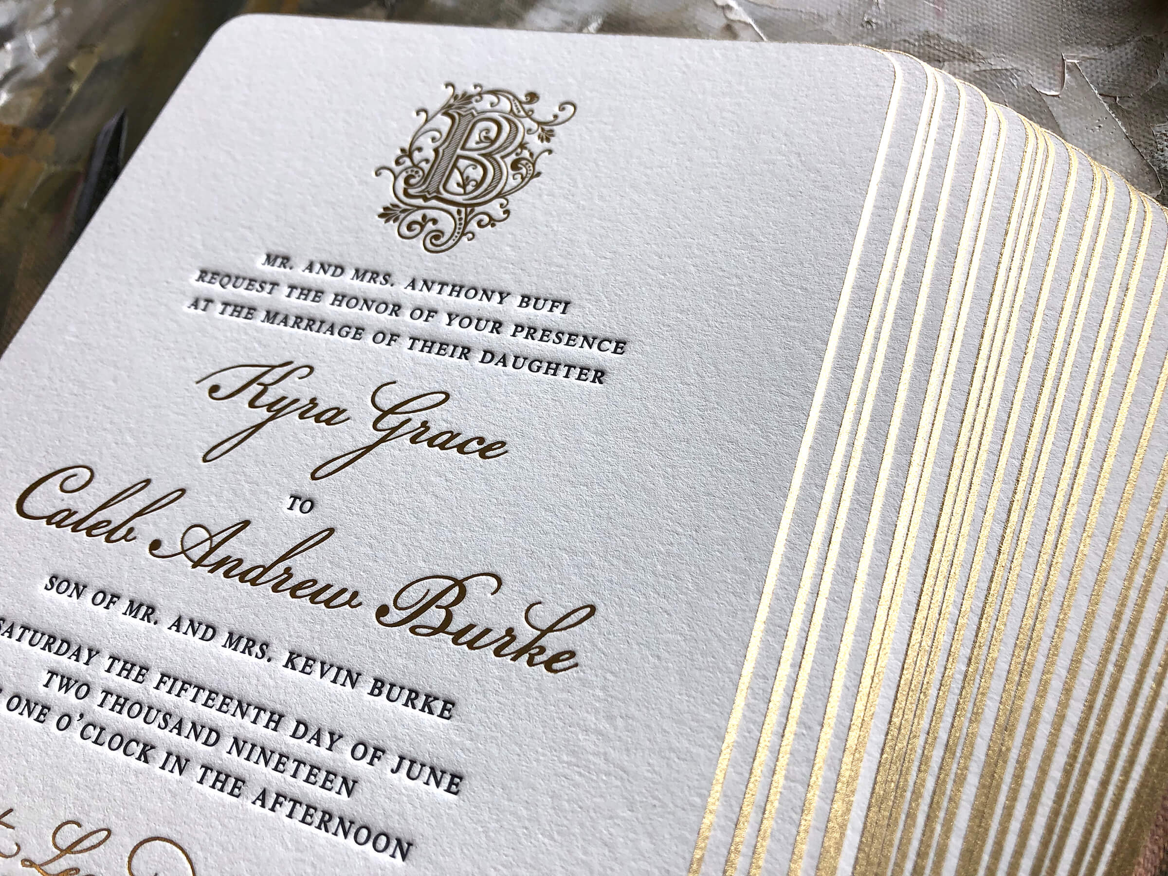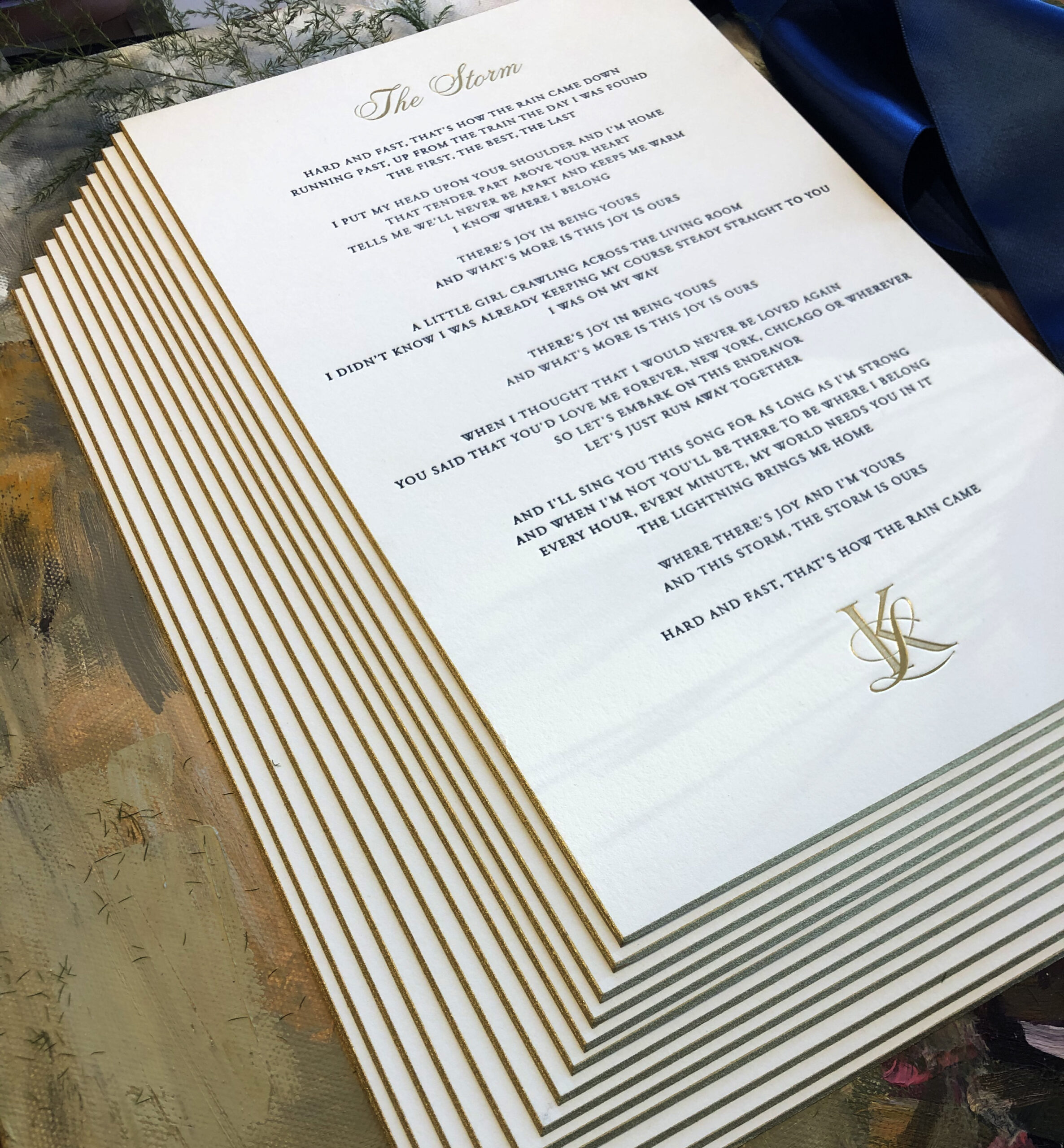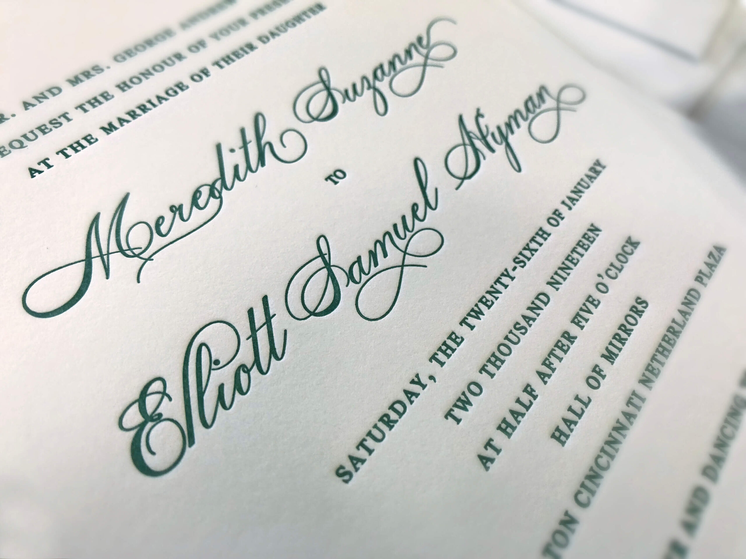This 500-year-old craft continues its renaissance in this digital age because of its extraordinary beauty and lasting impression on paper. Letterpress is unique and crisp giving greater visual definition to the type and every design detail. Our primary goal at Think Printing and Graphics and Maria Gossard Designs is to design and print the most beautiful wedding invitations and stationery for you. Each piece is handcrafted and finished to perfection.